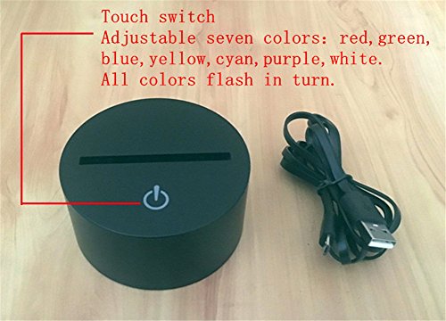 -. Feature : 7 Color change and cycle: Red, Green, Blue, Yellow, Cyan, Pink, White.When the color is white, you press button once more, seven kinds of color can cycle shine, do not need to press the button again / Touch button: Press one time, one color light up;Press it one again, it will turn off. Press it third time, another color will light up. / Automatically color changing mode. Press the touch button to last color, then press it again, auto color changing mode works. / Coming with USB power adapter, you can connecting it to your home power socket or computer USB port. / It can be put in bedroom, child room, living room, bar, shop, cafe, restaurant etc as decorative light.