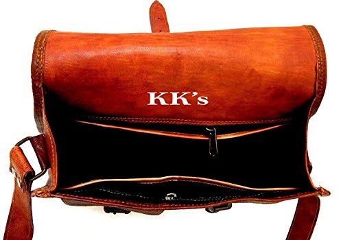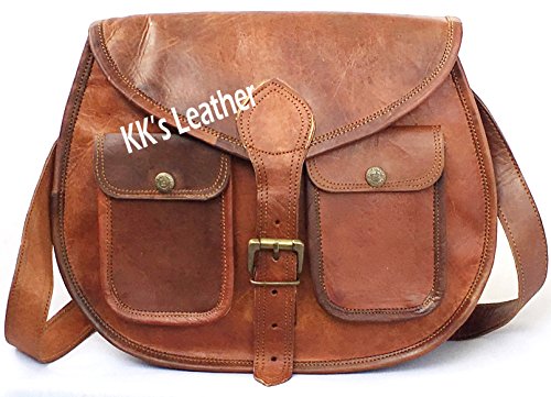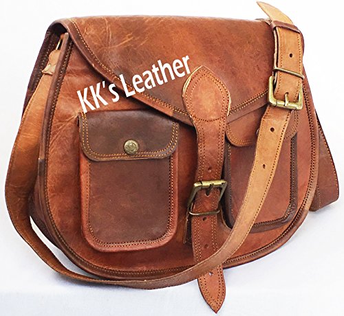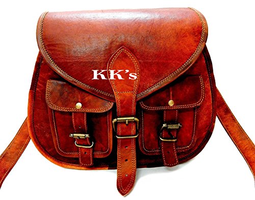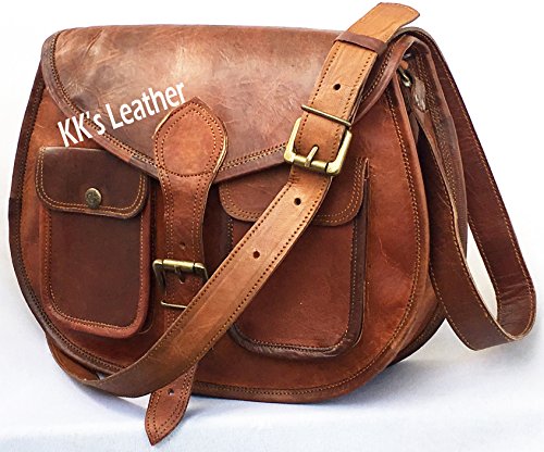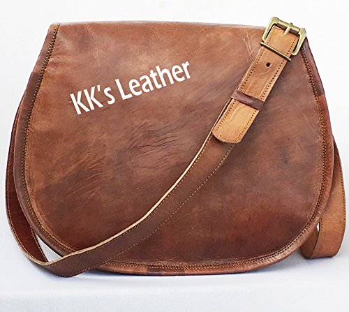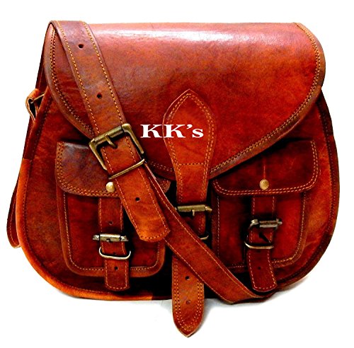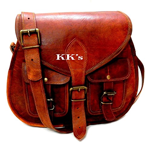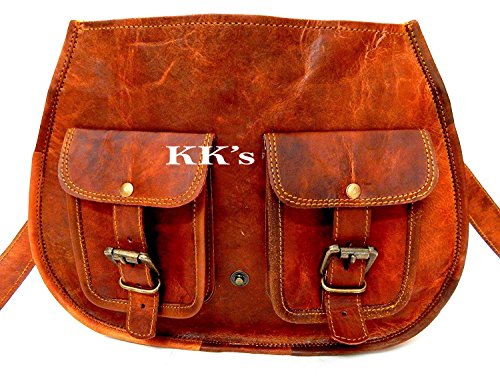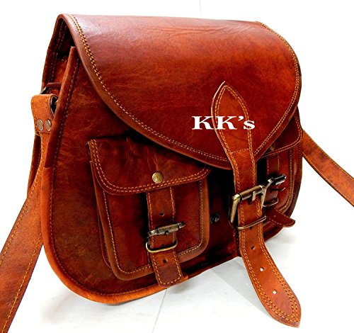 KK's 13" Inch Handicrafts Women Vintage Style Genuine Brown Leather Cross Body Shoulder Bag Han...