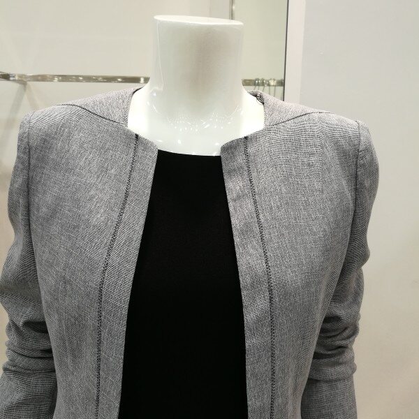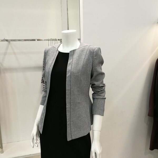 약간 짧은스타일의 스판소재로 된심플한 자켓이라 케쥬얼하게 코디해도 예쁘게, 세련되게 입을 수 있는 아주 고급스러운 느낌의 자켓이다. 청바지나 면바지에 입어도 스타일리쉬하게 연출할 수 있다.