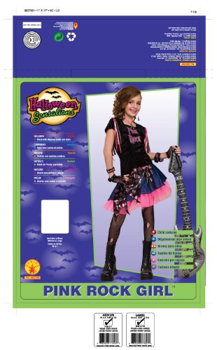 -. Binding : Toy -. Brand : Rubie's -. ClothingSize : One Size -. Color : multi-colored -. Department : unisex-child -. Feature : Pink Rock Girl costume includes dress with attached beads and chain / Black for the rocker and pink for the girl / Available in child sizes Medium (8 to 10) and Large (12) / Inflatable guitar and tights not included / Rubie's brings fun to dress-up with costumes and accessories kids play with all year long -. Label : Rubies - Domestic -. Manufacturer : Rubies - Domestic -. MPN : 883780 -. PackageQuantity : 1 -. PartNumber : 883780 -. ProductGroup : Toy -. ProductTypeName : CHILDRENS_COSTUME -. Publisher : Rubies - Domestic -. Size : One Size -. SKU : WC22315 -. Studio : Rubies - Domestic -. Title : Rubie's Pink Rock Girl Costume -. Warranty : Guaranteed against manufacturer defects