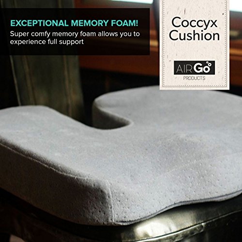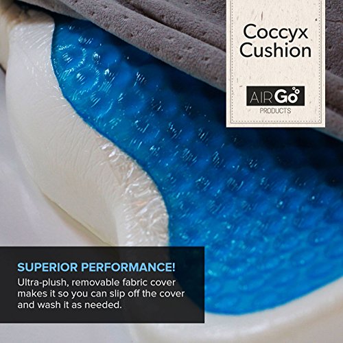 AirGo Products Coccyx Cushion - Coccyx Pillow - Take All The Pin Point Pressure Off Of Your Tailbone - Innovative Cooling Gel - Memory Foam - Ultra-plush, Removable Fabric Cover