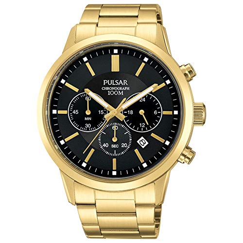 ブランド:SEIKO WATCH(セイコーウォッチ) 型番:20302 型番:PT3748X1 表示タイプ:アナログ ケース素材:PVD Gold plated ケース直径・幅:43 mm ケース厚:11 mm バンド素材・タイプ:スチール バンドカラー:ゴールド その他 機能:ラップタイム 本体重量:200 g ムーブメント:クオーツ 耐水圧:10 m 商品パッケージの寸法: 8 x 12 x 10 cm 発送重量: 381 g 電池 1 LR44 電池(付属) メーカー型番: 20302