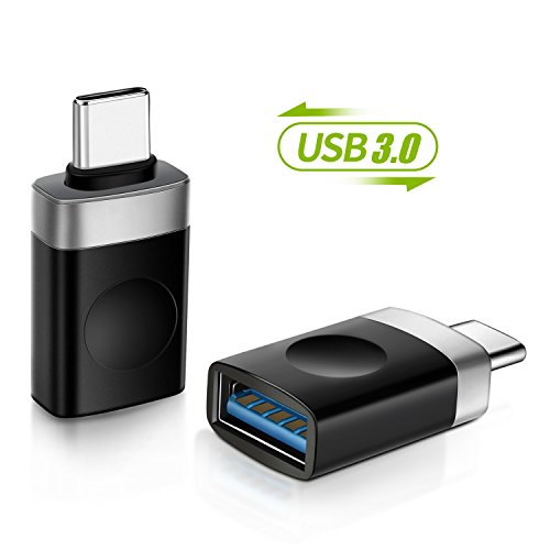 USB-C to USB 3.0 OTG Adapter [2-Pack], Converts USB-C into USB-A, Compatible with MacBook Pro, Samsung Galaxy S8/S8 Plus Note 8, LG G6 G5 V20 V30, Google Pixel, Nexus 6P 5X And More (Black & Gray)