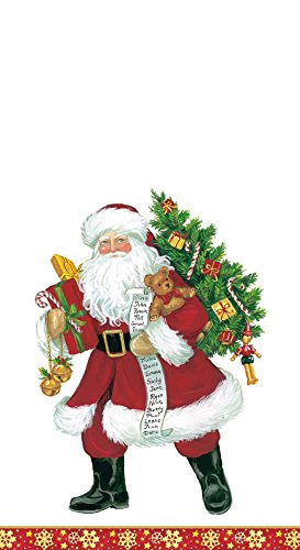 Studio : Caspari Publisher : Caspari Binding : Kitchen Product Description Entertaining with Caspari Lynn Haney Santa Guest Towels, Pack of 15. Our versatile Guest Towels can be used both as buffet napkins and guest towels. Our Guest Towels are printed in Germany using non-toxic, water-soluble dyes, making them biodegradable and compostable. Disposability makes clean-up a snap so you have more time to enjoy the party. The soft, yet strong 3-ply tissue has the look and feel of linen without the maintenance. Sold in a pack of 15, each folded towel measures 4-1/4 by 8-Inch. Finish the look with other items from our coordinating high-end paper table top collection. Includes paper plates, napkins and cups-finish the look with our acrylic stemware and top quality pillar and taper candles. Caspari-bringing beauty, style and convenience into your home every day. 0