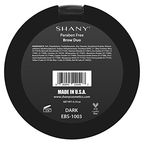 People usually forget how important brows really are. They are not just lines of hair over your eyes, they are your main asset to frame the rest of your face. The SHANY Star Brow Duo is the best tool to create perfectly smudge free brows. The SHANY Star Brow Duo comes in four separate shade combinations with two perfectly paired brow powders to customize and blend to your own brow color. This is the perfect product for all skin/ hair tones and its long-lasting formulation is Paraben-free. Its perfect for everyday looks or on days when you want to give that extra POW. Paired with a SHANY angled eyebrow brush, application is a breeze. It also doubles as an eye shadow. This brow duo comes in a small and convenient singlet that can be easily taken on-the-go. Made in USA.Feature