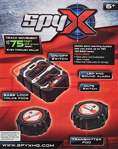 Studio : MukikiM Publisher : MukikiM Binding : Toy Product Description The SpyX mobile early-warning alarm system tracks movement up to 75 feet away, even through walls. The set includes an alarm base and 2 wireless transmitter pods. The base can be set to a sound alarm or LED flash. SpyX surveillance, communication and concealment equipment is the next generation of cool spy toys. SpyX products are designed with a rough, tough look that every budding spy will appreciate! Alarm base requires 2x AAA batteries (not included). 2 Transmitter pods require 4x AAA batteries (not included) Ages 6 0