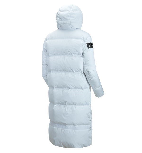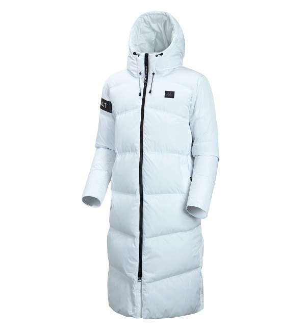 오리지날 벤치 코트종아리까지 내려가는 기장 긴 롱기장 다운체온 보온형 일체형 후드, 방풍 넥으로 보온성 우수2웨이지퍼 밑단 옆선트임 톤온톤 배색 아트윅