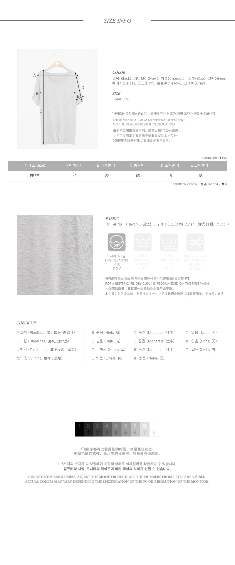 베이직한 디자인으로 다양한 코디룩을 완성해드리는티셔츠 아이템이예요~^^라운드넥과 적당한 길이감으로다양한 레이어드룩을 연출해드려요~베이직한 디자인으로 스커트,팬츠 등다양한 아이템들과 데일리한 코디룩을완성해드리는 티셔츠랍니다~적당한 두께감으로 계절에 구애없이즐길 수 있는 티셔츠 아이템이예요~
