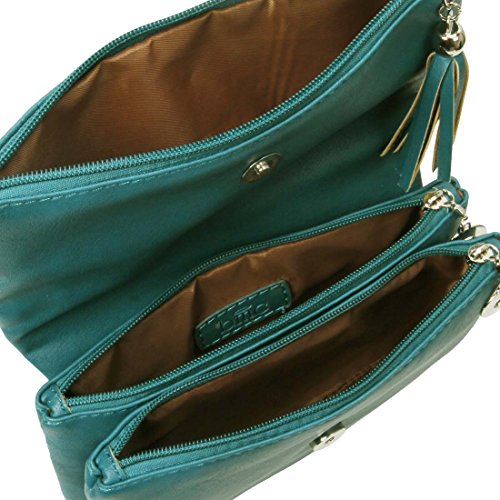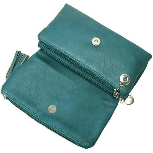 BMC Womens Deep Aqua Textured PU Faux Leather Quilted Pattern Triple Compartment Zipper Tassel Fashion Clutch Handbag