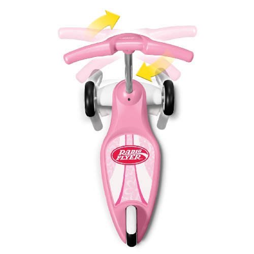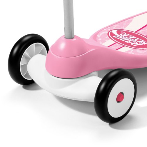 - Feature : Classic scooter with 3 wheels for easy balance / Extra-wide base for better balance / Improved steering helps develop coordination / Easy-to-use foot break adds control / Adorable pink hue