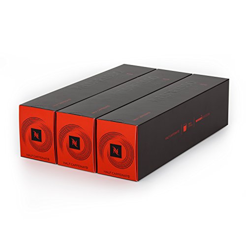 HALF CAFFEINATO A half-caffeinated medium roast coffee blend for the Nespresso VertuoLine system. Sold in sleeves of 10 capsules, each capsule brews a 7.8 ounce cup of coffee. VertuoLine machines are designed to capture the rich textures of espresso in a full size cup of coffee. VertuoLine capsules have unique barcodes which are read by the machines to ensure perfect extraction at the touch of a button. Half Caffeinato capsules only compatible with Nespresso VertuoLine machines. Will not work with OriginalLine machines.