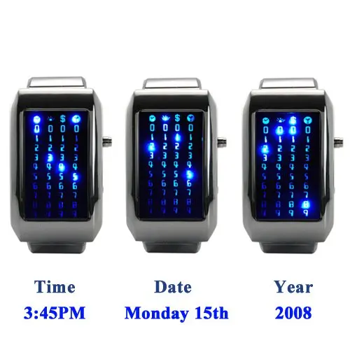 탭 디스플레이 버튼 오른쪽 계시 시계 화면 빛. 네 열 조명. 처음 두 열 나타냅니다. 지난 나타냅니다. 당신은 당신이 원하는 시계 시간을 무작위로 (매 10 분) 또는 만 시간을 때 가볍게. 어떻게 여성의 위해 플루이 공간 시간 여행 terrificness? 사실 시작할 때 입고 시계 자신을 찾을 수 보고 전체 전자기 스펙트럼 극단적 인 같아요. 물론 Klingon 될 필요가 또는 Dementor 입기 시계. 실제론, 이 시계는 마법처럼 경사 Muggles, 날씨 제어 고아 도둑을, Narnians, 팬 모리스 Sendak 여성의 " 야생 것들 ", 또는 사람을 분들은 다른분도.