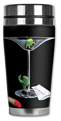 Mugzie 909-MAX "Michael Godard: Mystery Martini" Stainless Steel Travel Mug with Insulated Wetsuit Cover, 20 oz, Black