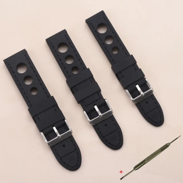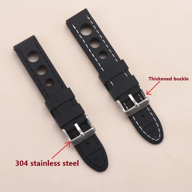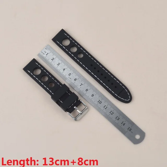 | [해외] DINOVE 블랙 실리콘 고무 20 미리메터 22 미리메터 24 미리메터 바느질 블랙 화이트 색상 육군 군사 시계 스트랩 밴드 버클 22 미리메터 |