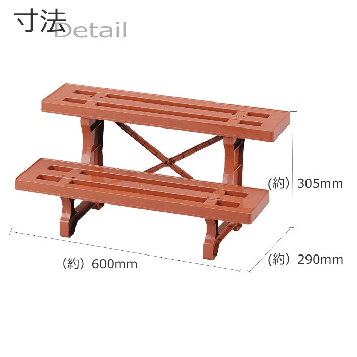 商品名 フラワースタンド ヒナ2段 P-600 サイズ(約) 幅600mm×奥行290mm×高さ305mm(1台)材質 本体:ポリプロピレン  商品重量(約) 670g 生産国 日本備考 ◆玄関周りにピッタリな大きさのフラワースタンド   ◆600mm幅は大きすぎず使いやすいサイズ。   ◆製品は信頼の日本製 ※お取り寄せ商品の為メーカー欠品の場合お時間を頂く場合がございます。