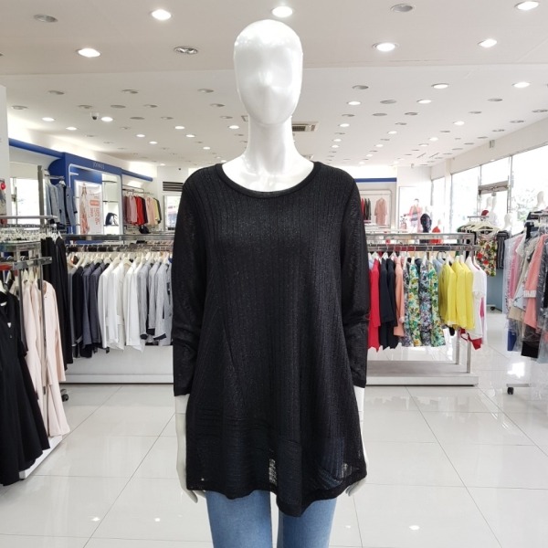 밑단 언발란스 은사배색 롱티셔츠-CA7U4-WKL060-450블랙