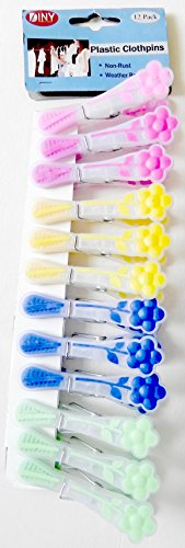 Diny Home & Style Plastic Soft Touch 12pk Clothes Pins Floral Rubber Tip