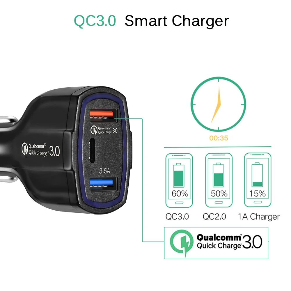 Port:1xQC3.0 USB Port 1xUSB Port 1xType-C Port