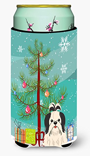 Caroline's Treasures Merry Christmas Tree Shih Tzu black White Tall Boy Beverage Insulator Hugger BB4213TBC, Multicolor