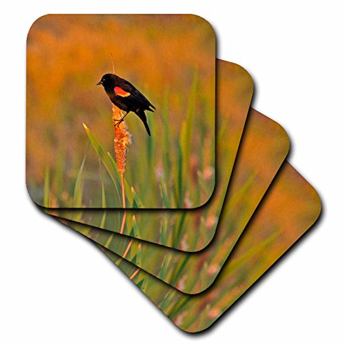 3dRose cst_93613_1 Usa, Oregon, Portland. Red-Winged Blackbird Us38 Bja0547 Jaynes Gallery Soft Coasters, (Set of 4)