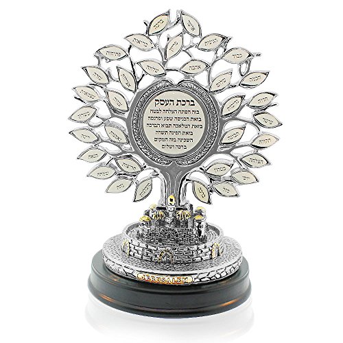 Home Decor Good Luck Tree on Stand Base Jerusalem Design Business Blessing in Hebrew