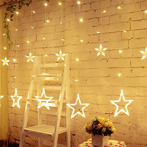 Ucharge Star Curtain Lights,8 Modes,29V,With 12 Stars 138pcs LED Waterproof Linkable Curtain String Lights,Warm White String Light for Christmas/Halloween/Wedding/Party Backdrop,UL Listed