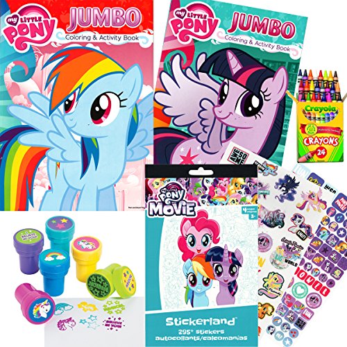 My Little Pony Coloring & Activity Book Set Includes Two Coloring and Activity Books, 295 MLP The Movie Stickers, 24 Crayola Crayons, and 6 Unicorn Stampers