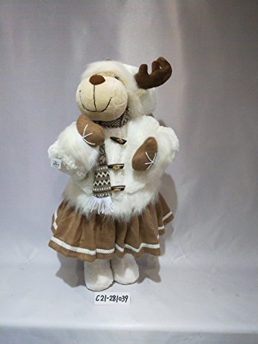 28" Standing Christmas Deer White Coat & Tan Skirt