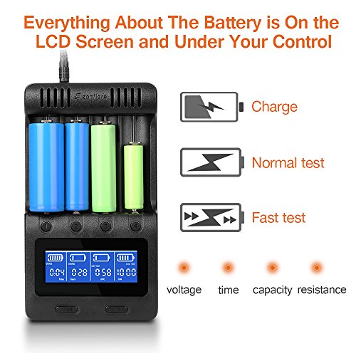 LCD Display Speedy Universal Battery Charger with Car Adapter, Zanflare C4 Smart Charger for Rechargeable Batteries Ni-MH Ni-Cd A AA AAA SC, Li-ion 18650 26650 26500 22650 18490 17670 17500 17355