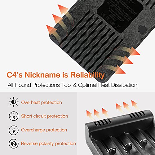 - UNIVERSAL CHARGER: It can charge simultaneously rechargeable batteries of different specifications (18650, 26650, 26500, 22650, 18490, 17670, 17500, 17355, 16340, 14500, 10440, A, AA, AAA, SC sizes).