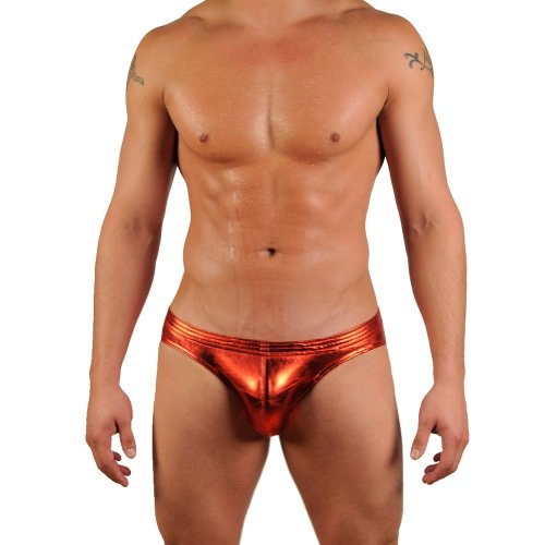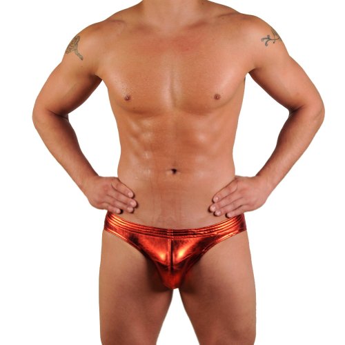 Mens Liquid Copper Metallic Contour Pouch Bikini Swimsuit By Gary Majdell Sport Size Large