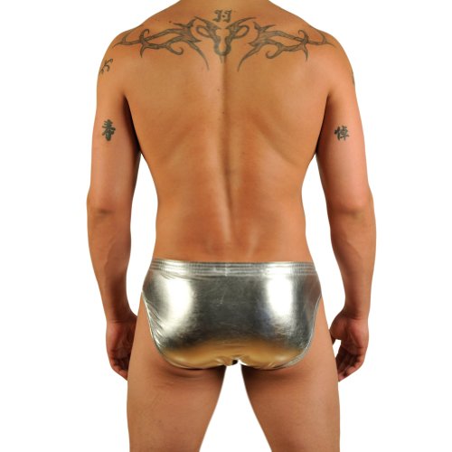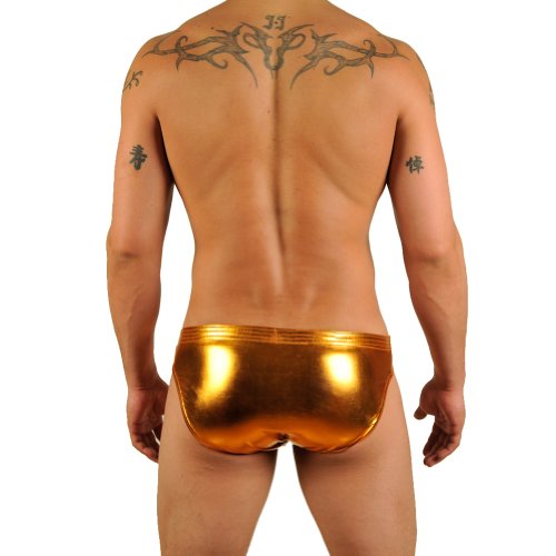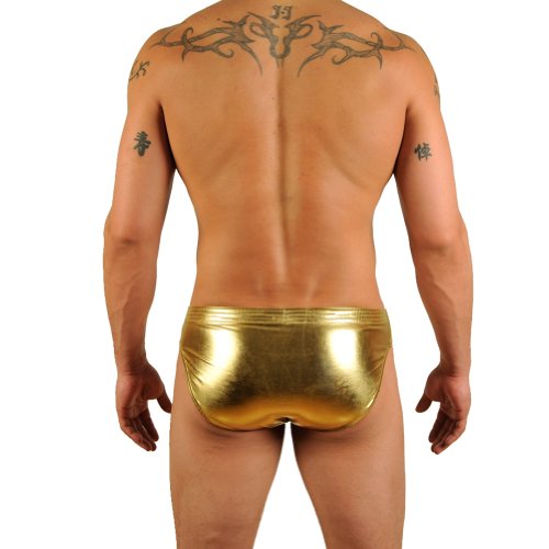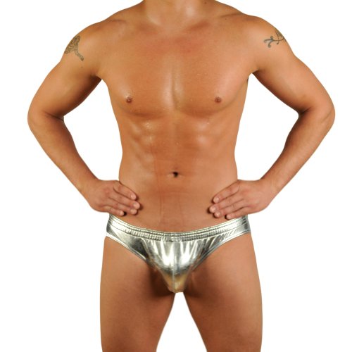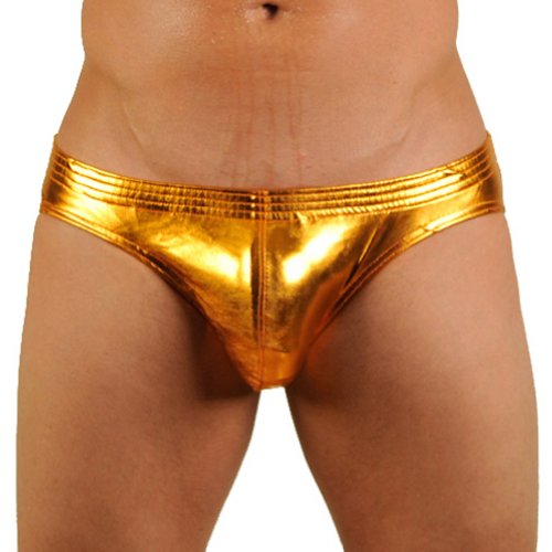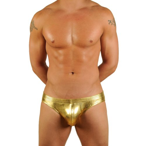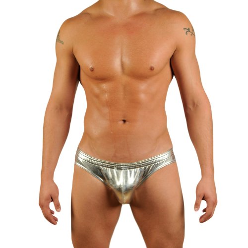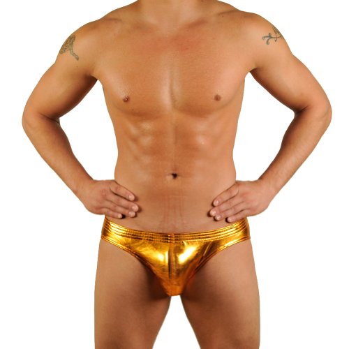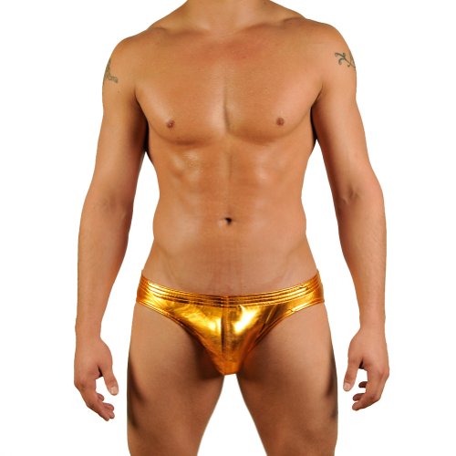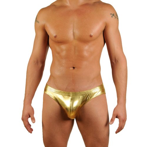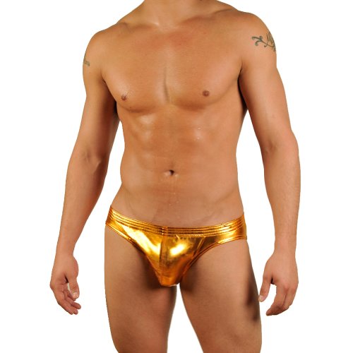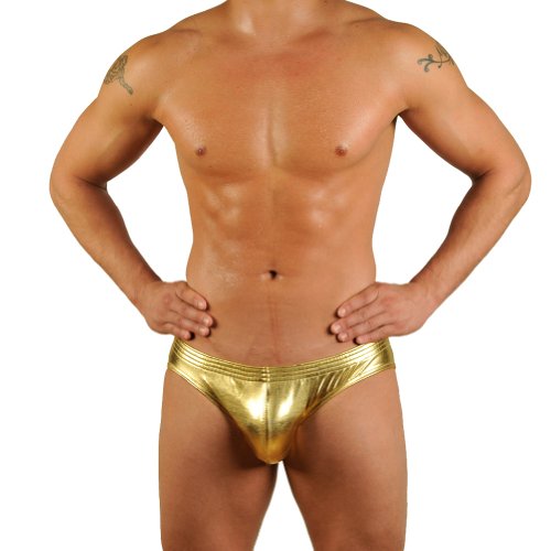 Mens Liquid Gold Metallic Contour Pouch Bikini Swimsuit By Gary Majdell Sport Size X-Large
