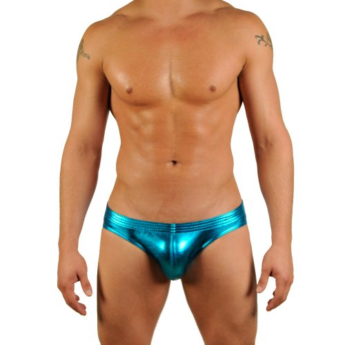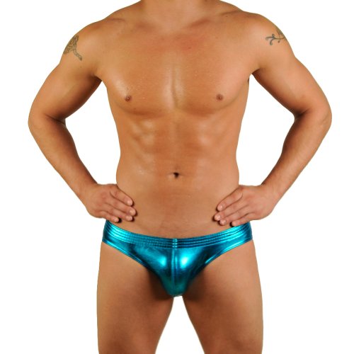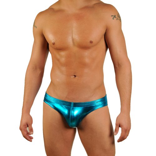 Mens Liquid Turquoise Metallic Contour Pouch Bikini Swimsuit By Gary Majdell Sport Size Medium