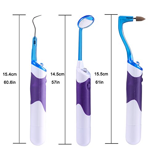 Features Material: ABS Application: oral cavity care for adults Size: L*W 6.1'*0.8'/15.5*2cm Net weight: 2.3oz/66g Color: white andamp; purple Package list: 1* dental mirror; 1* plaque remover; 1* tooth stain eraser