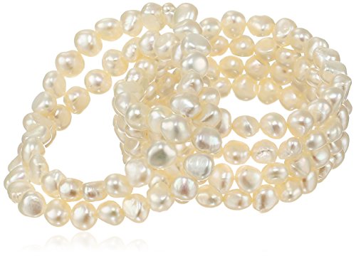 Set of six stretch pearl strands featuring high-luster freshwater cultured pearls in natural potato shape