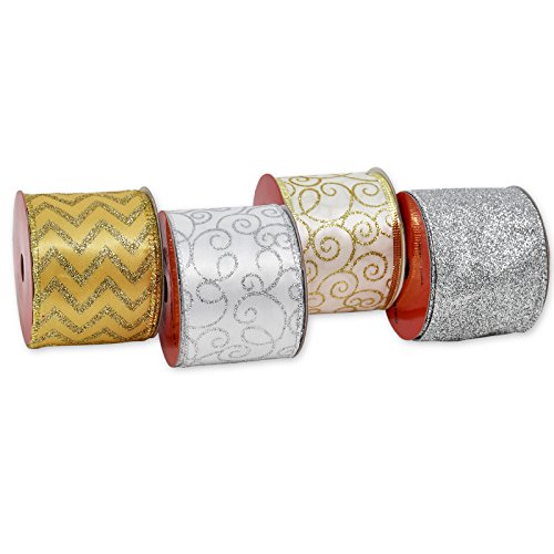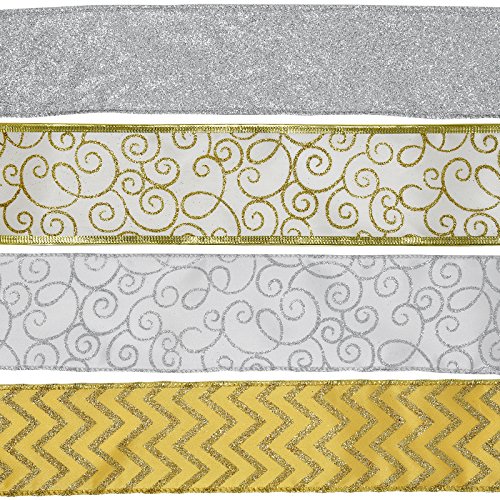 Product Description Gift Boutique Set of 4 Gold Silver Wire Edge Ribbon is perfect for bows, wreaths, gifts, swags or even decorating the tree. Total of 24 Yards will complete multiple projects at a great value! 0