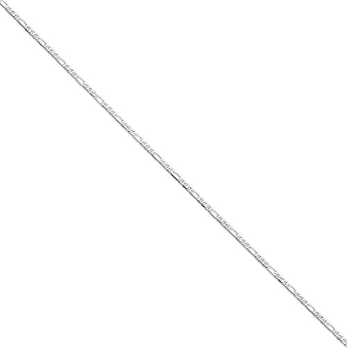 SPECIFICATIONS: Jewelry Type: Anklets, Chain Type: Figaro, Anklet Type: Chain Styles, Material: Primary: Gold, Material: Primary - Color: White, Material: Primary - Purity: 14K, Finish: Polished, Plating: Rhodium, Chain Length: 10 in, Chain Width: 2.4mm, Clasp /Connector: Lobster, Feature(1): Solid, Profile Type: Flat