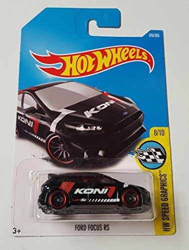 -. Binding : Toy -. Brand : Hot Wheels -. Feature : 1:64 scaled die-cast car. / Black with white and red accent. Koni printed on the side in white. / 8/10 in the 2017 HW Speed Graphics series. / 176/365 in the 2017 Hot Wheels line. -. IsAdultProduct : 0 -. Label : MATTEL -. Manufacturer : MATTEL -. MPN : 10094243 -. PackageQuantity : 1 -. PartNumber : 10094243 -. ProductGroup : Toy -. ProductTypeName : TOYS_AND_GAMES -. Publisher : MATTEL -. Studio : MATTEL -. Title : Hot Wheels 2017 HW Speed Graphics Ford Focus RS 176/365, Black