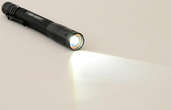 | 仕様 | 防滴仕様(IPX3相当) 光源:LUXEON REBEL 白色パワーLED1灯(約2.2W) 明るさ:最大約100ルーメン 使用電池:アルカリ単4乾電池2本(テスト用付属) 点灯時間:約3時間~3.5時間 |