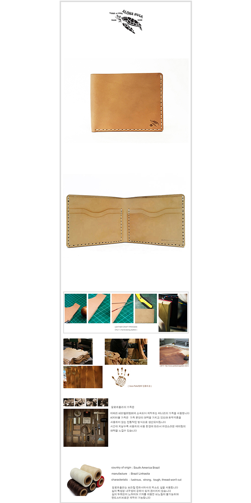 알로하훌라의 제품은 이태리 베라펠레협회 태너리의 가죽으로 만들어집니다.