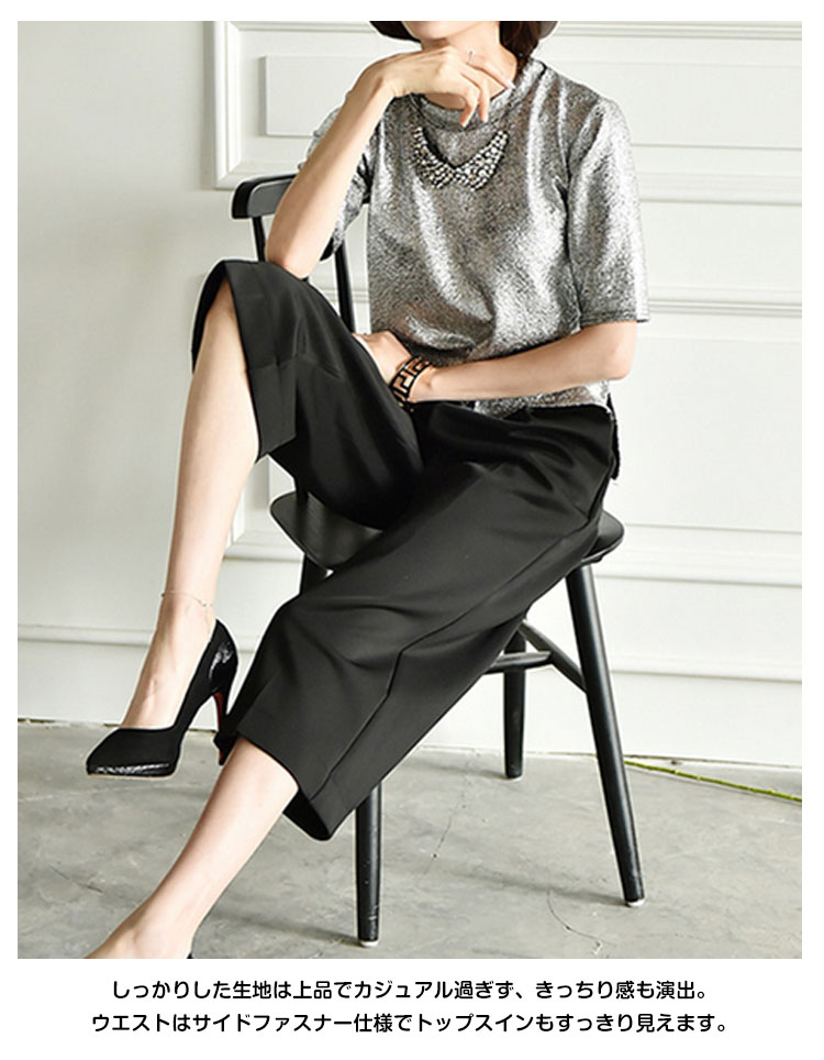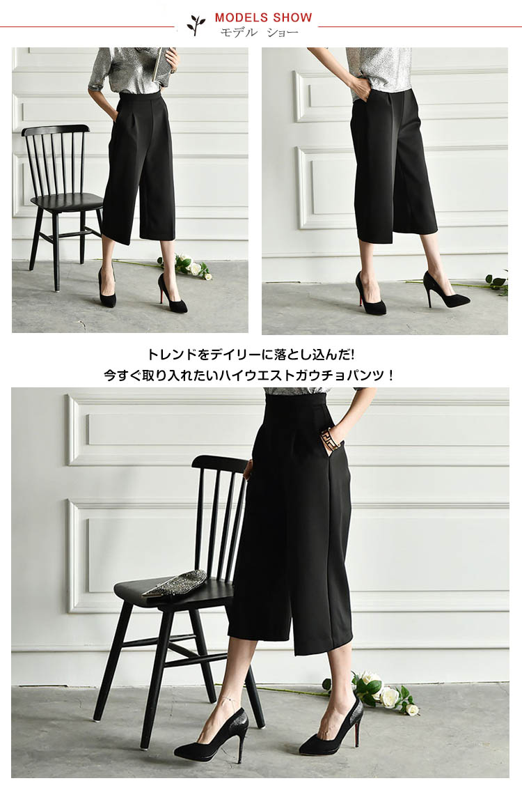 | トレンドをデイリーに落とし込んだ!今すぐ取り入れたいハイウエストガウチョパンツ!しっかりした生地は上品でカジュアル過ぎず、きっちり感も演出。ウエストはサイドファスナー仕様でトップスインもすっきり見えます。ポケットはきちんと施しながら、シルエットもキレイに。長めの丈感が主流!必ず1本は持っていたいマストアイテムです!! | |