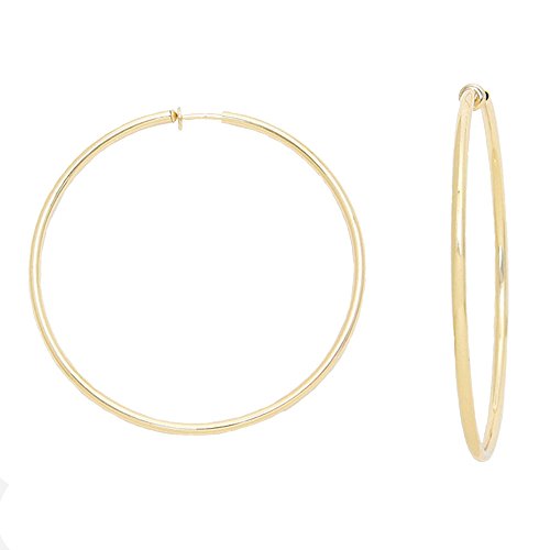 2.25 in Solid Goldtone Spring Back Hoop Clip On Earrings