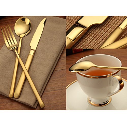 Favorable Price for 4-PIECE SET includes: 1 Dinner knife, 1 Dinner Fork, 1 Spoon and 1 Teaspoon, Comes Packaged in a Nice Gift Box Only. (other accessaries not included)