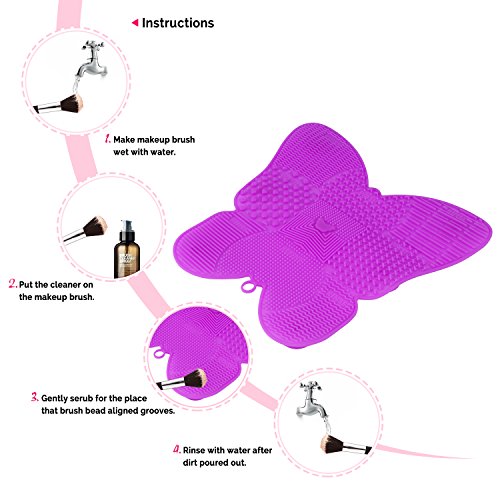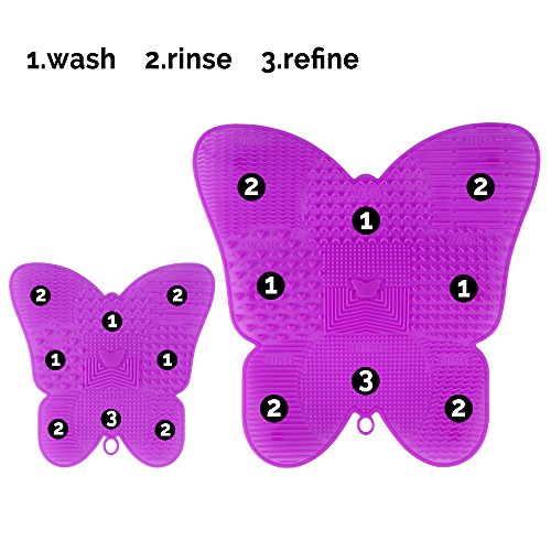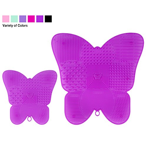 Makeup Brush Cleaning Mat, ESARORA Makeup Brush Cleaner Pad Set of 2 Cosmetic Brush Cleaning Mat Portable Washing Tool Butterfly Shape (Light Purple)