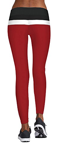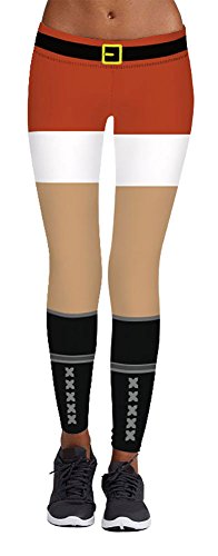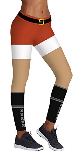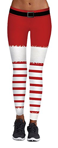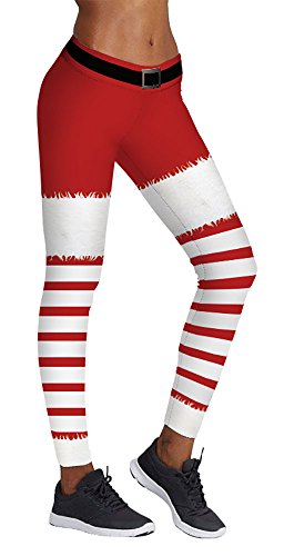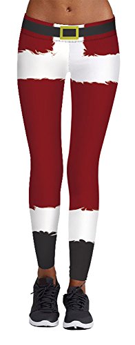Jescakoo Red White Belt Printed Stretch Legging Pants Santa Claus Costume