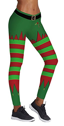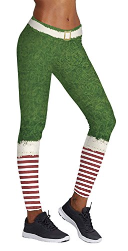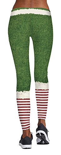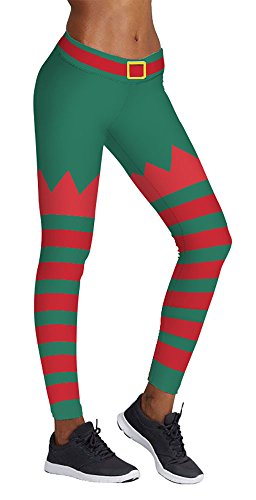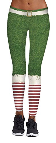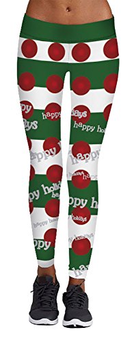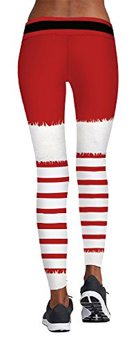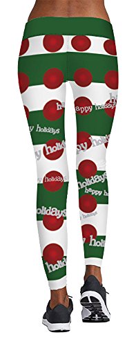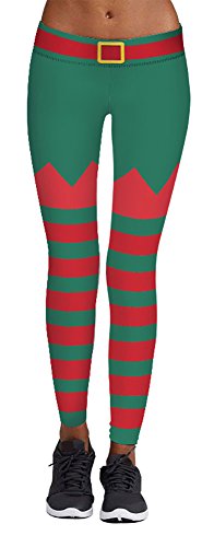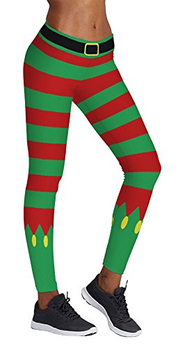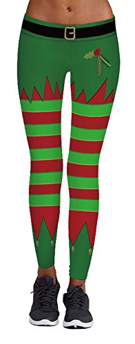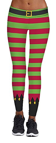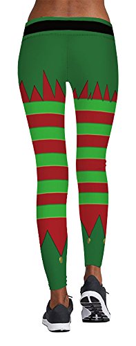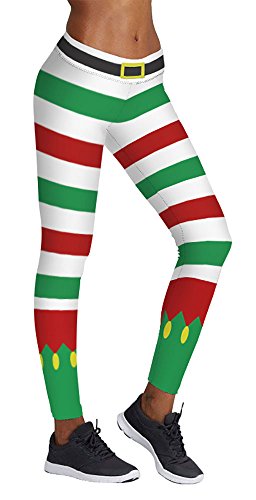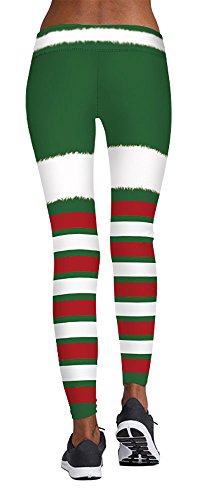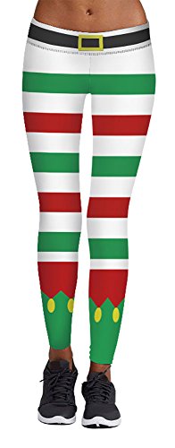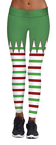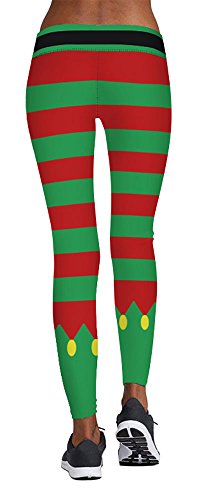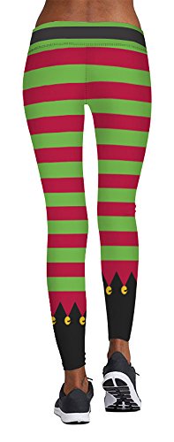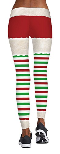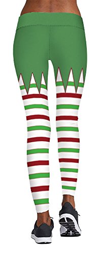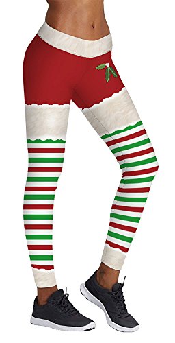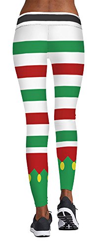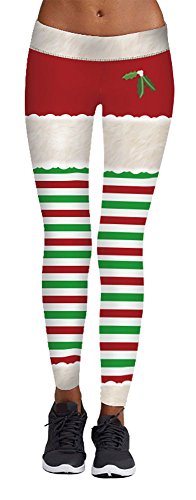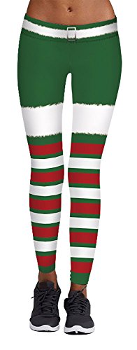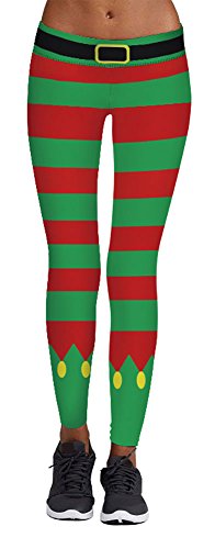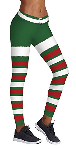 Jescakoo Womens Mistletoe Print Green Red Striped Leggings Ugly Christmas Party Costume