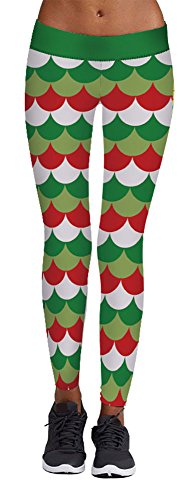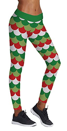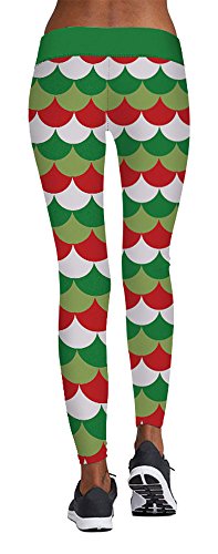 Jescakoo Women's Green Red White Mermaid Scal Printed Christmas Legging Pants