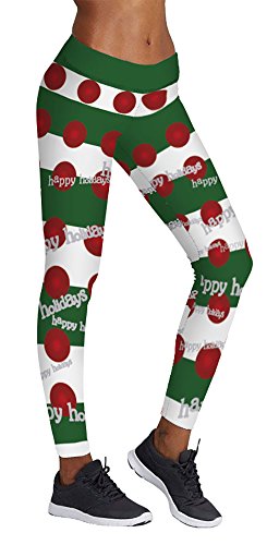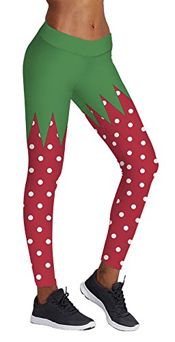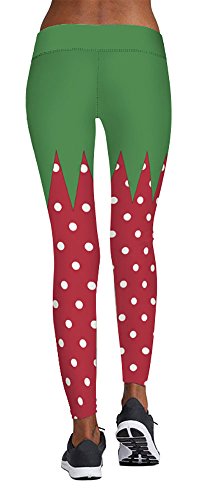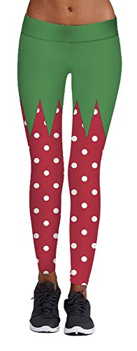 Jescakoo White Polk Dot Green Leaves Print Red Christmas Costume Stretch Leggings Women