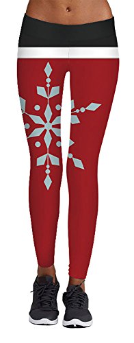 Jescakoo Womens Big Snow Flake Print Black Red Legging Pants for Ugly Christmas Party