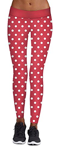 Jescakoo White Polk Dot Print Red Leggings for Women Ugly Christmas Party Costume